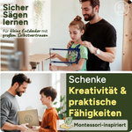 Für fortgeschrittene Bastler eignet sich das große Schnitzmesser-Set mit 12 Werkzeugen und schnittfesten Handschuhen. Hier lernen Kinder unter Aufsicht, wie man Holz richtig bearbeitet – sicher und verantwortungsbewusst.