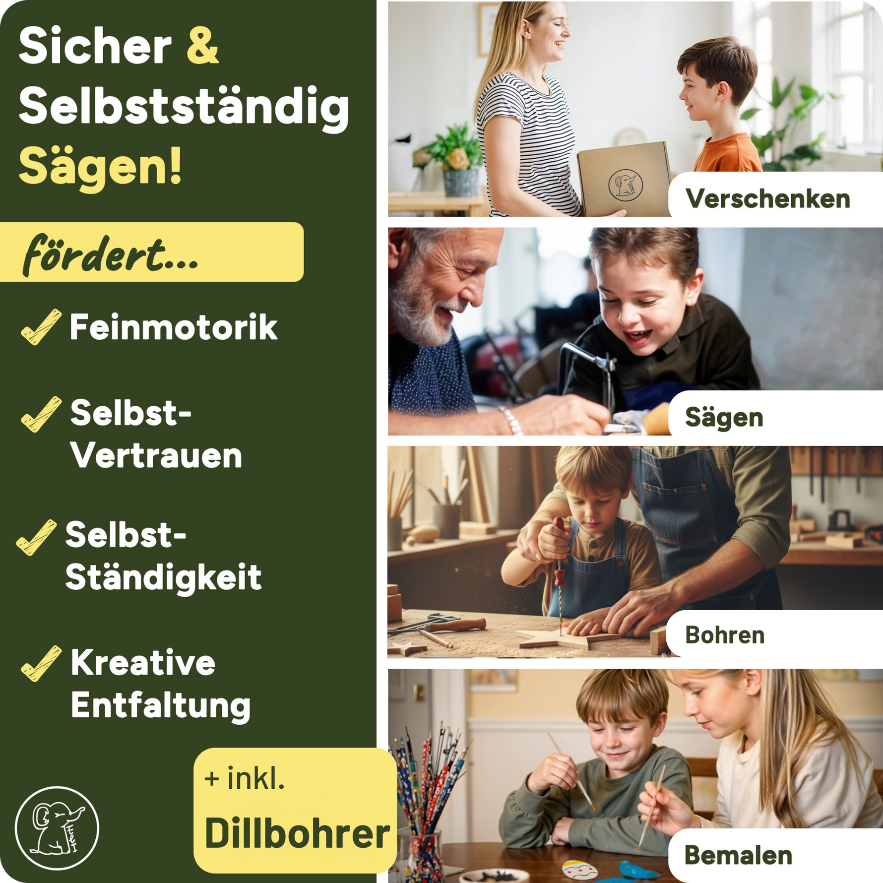 Damit das sicher gelingt, gibt es bei Eli der Elefant liebevoll zusammengestellte Sets, die genau auf kleine Hände und kreative Abenteuer zugeschnitten sind.