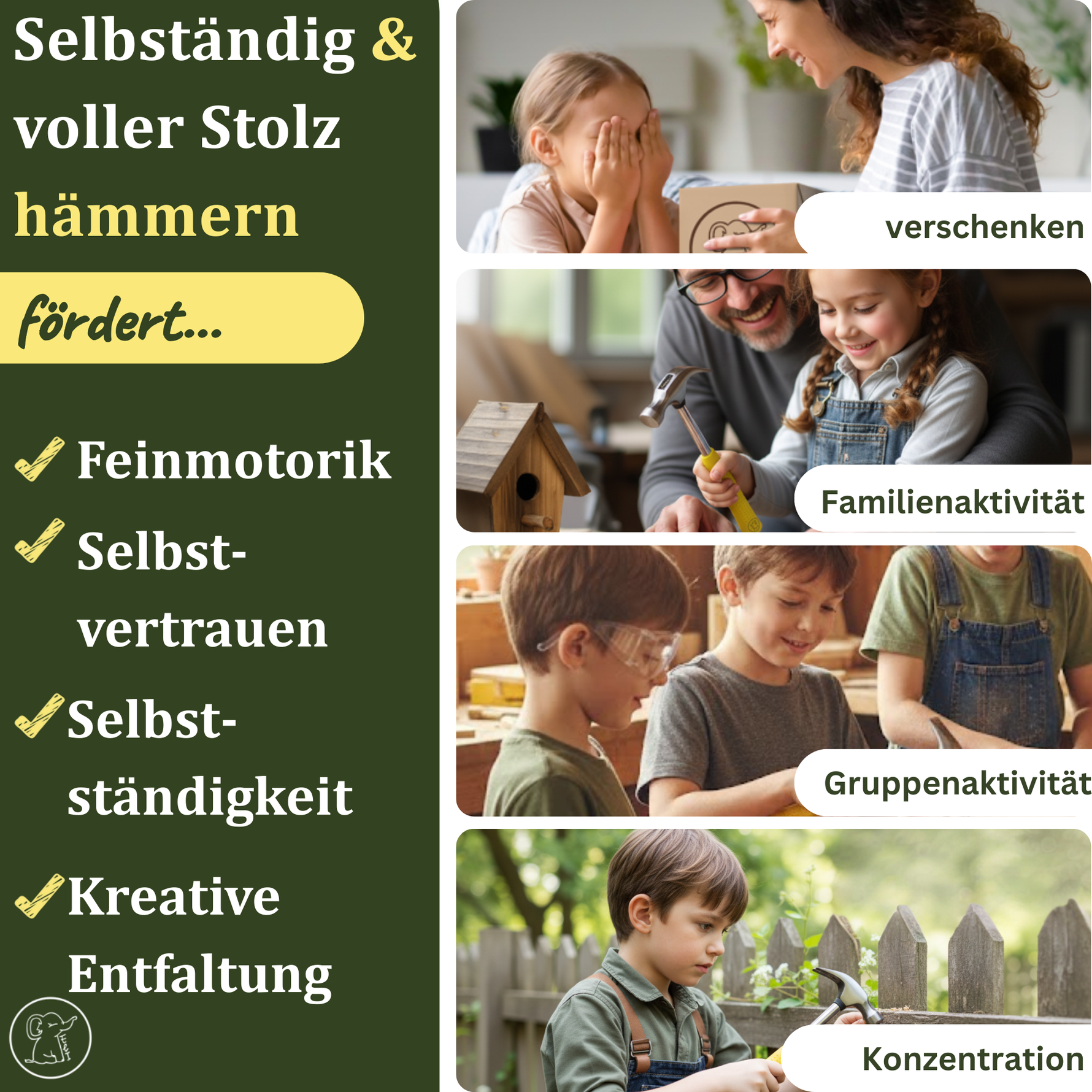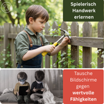 Die wertvollsten Momente im Leben sind oft die einfachsten: Das Lachen eines Kindes, wenn es etwas Neues ausprobiert, das Staunen beim Erkunden der Natur oder das Erfolgserlebnis nach einem selbstgeschaffenen Werk. Kinder lernen vor allem durch eigene Erfahrungen. Sie entwickeln Motorik, Kreativität und Freude am selbstständigen Handwerken. Wir entwickeln durchdachte Werkzeuge und Spielzeuge, die sie dabei unterstützen fördern.  Weg vom Bildschirm und raus in die Natur – das nächste Abenteuer wartet schon!