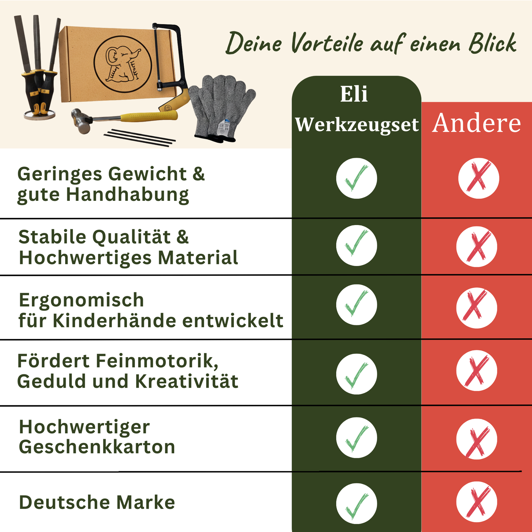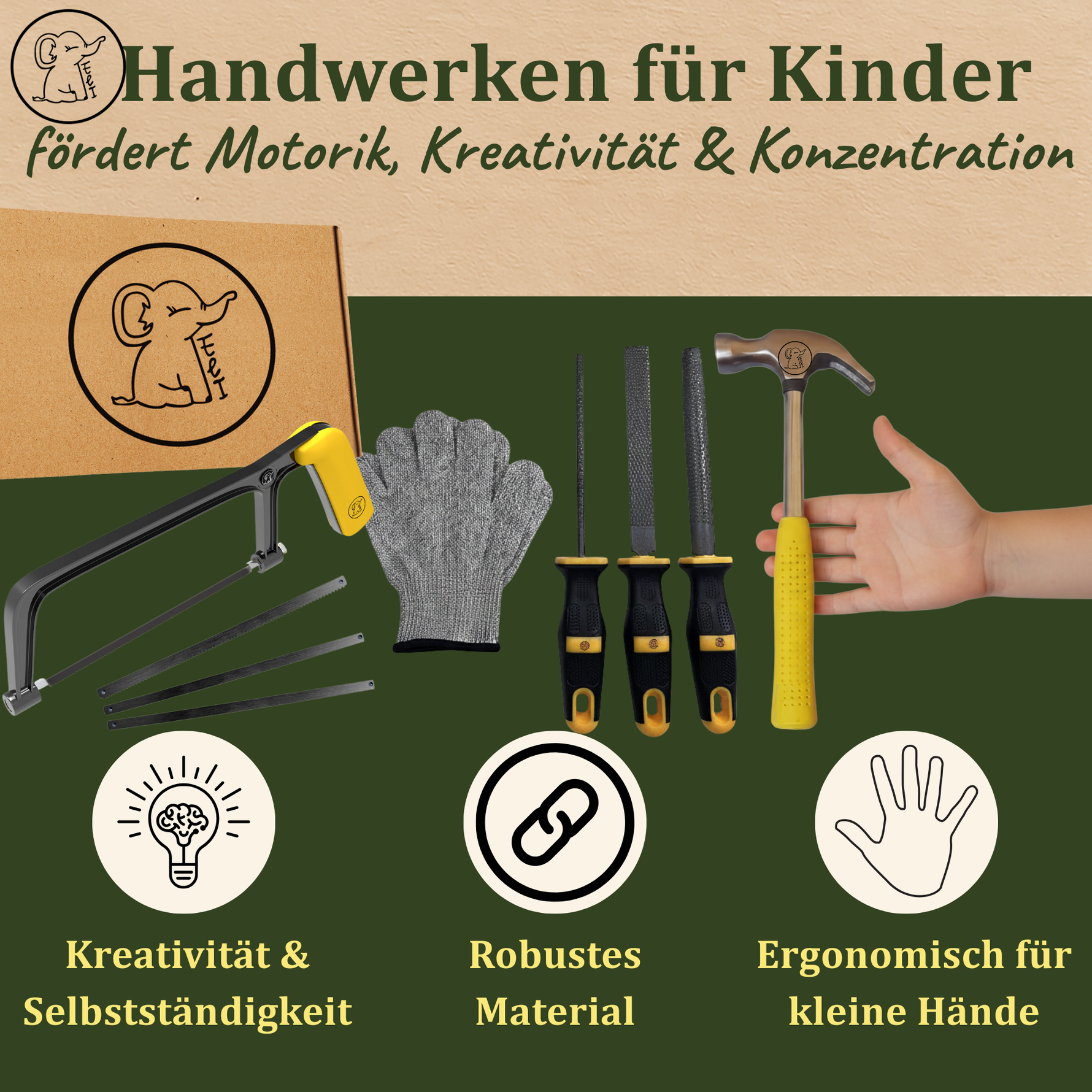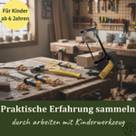 Die wertvollsten Momente im Leben sind oft die einfachsten: Das Lachen eines Kindes, wenn es etwas Neues ausprobiert, das Staunen beim Erkunden der Natur oder das Erfolgserlebnis nach einem selbstgeschaffenen Werk. Kinder lernen vor allem durch eigene Erfahrungen. Sie entwickeln Motorik, Kreativität und Freude am selbstständigen Handwerken. Wir entwickeln durchdachte Werkzeuge und Spielzeuge, die sie dabei unterstützen fördern.  Weg vom Bildschirm und raus in die Natur – das nächste Abenteuer wartet schon!